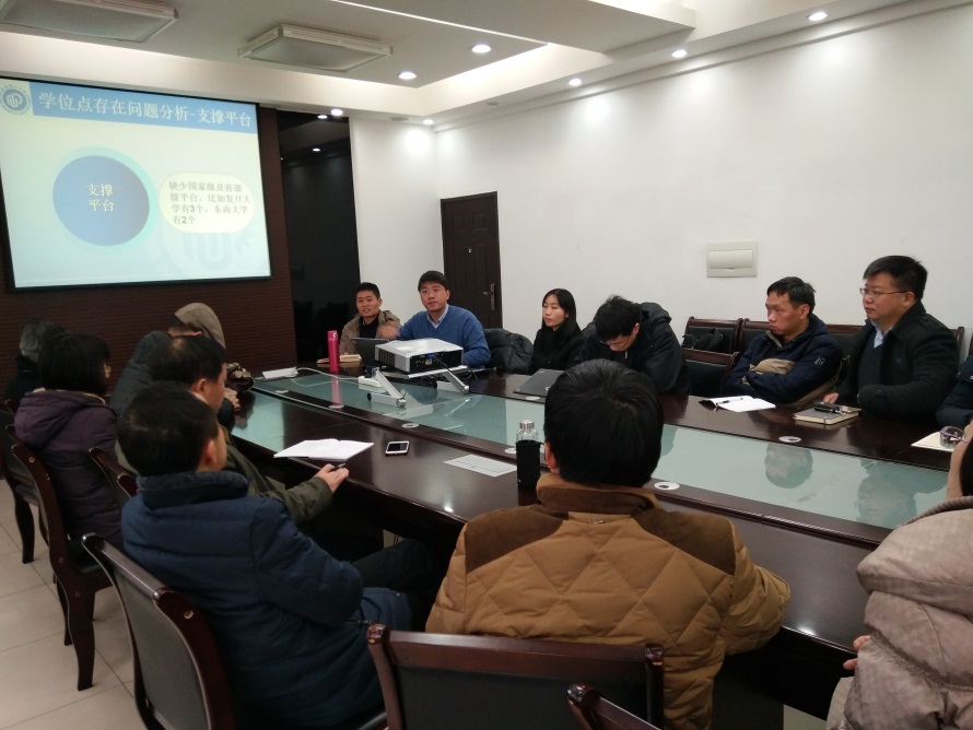 其次,本次会议分析了当前计算机学科在教学成果奖、毕业生质量、校企联合研究中心等方面的优势,一个国家工程实验室与四个大数据研究中心,为学科进一步发展提供了良好的平台;会议还指出了当前学位点发展尚存在的主要问题,如缺少高层次人才、博士生导师队伍数量亟需补充、教授所占比例较小、缺少ESI高倍引论文、承担国家重大、重点科研项目的能力还不够等。