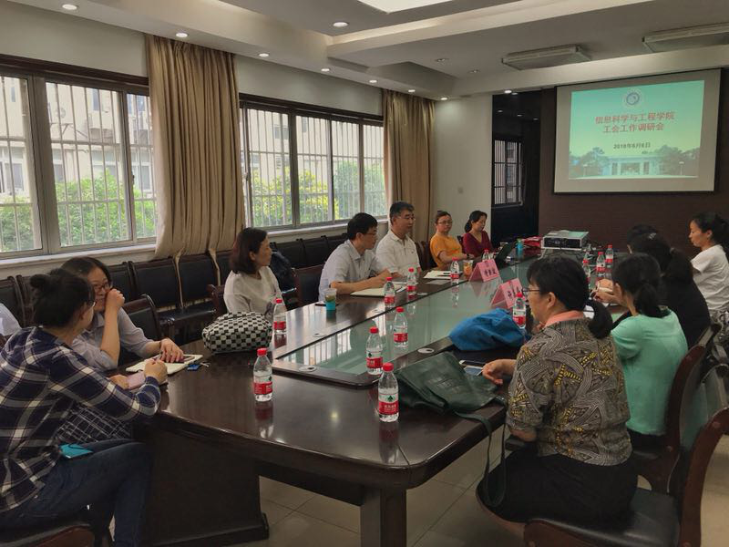 6月6日下午,校工会常务副主席沈悦萍和校工会干部许美婷走访av在线 ,就教工小家建设、二级教代会作用发挥和工会日常工作开展等方面进行了调研。av在线 党委书记侍洪波、工会主席何高奇及部门全体工会委员、工会组长参加了调研会。