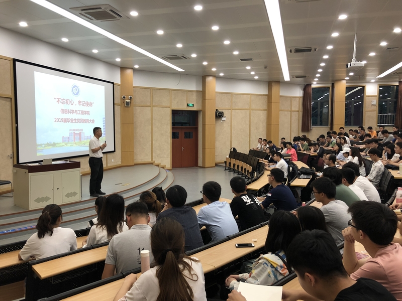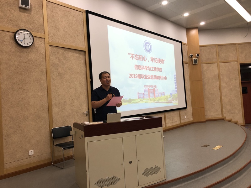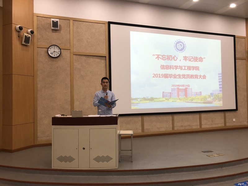 为加强毕业生党员离校教育,进一步强化广大毕业生党员的党性意识、宗旨意识和组织纪律观念,充分发挥毕业生党员在毕业离校环节中的先锋模范作用,6月19日晚,av在线 党委召开毕业生党员离校教育大会,以“不忘初心、牢记使命”为主题,对2019届毕业生党员进行离校前的集中党性教育。av在线 党委书记侍洪波,专职组织员魏群、吴江洁,毕业班辅导员潘恬以及2019届全体本科、研究生党员参加了此次教育大会。