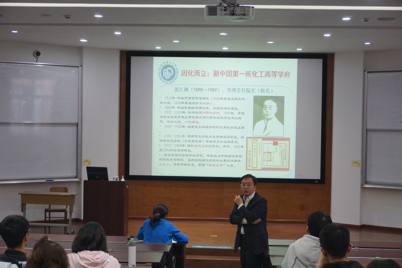 “作为你们的学长,回学院与大家分享对校史的理解和体会,希望对大家有所帮助。”王惠文亲切的开场,瞬间拉近了与学生之间的距离,引起了学生的情感共鸣。他分享了自己在华理读书与工作经历,勉励同学们努力学习,在母校的历史上留下奋斗的足迹。随后,王惠文用生动详实的历史资料,将华理这所具有家国情怀大学的故事娓娓道来。