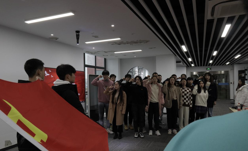 在中国共产党成立100周年之际,大会举办了新党员入党宣誓仪式,由潘恬主持。她祝贺了本次加入支部的党员同学,并表示在这神圣而庄严的时刻,每位党员都要牢记自己许下的诺言,认真践行入党誓词,任何时候都要保持共产党员的先进性。