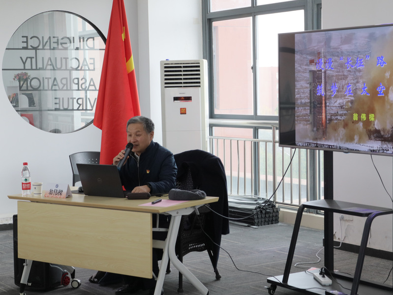 12月24日下午,av在线 奉贤校区师生党支部“筑梦寰宇,科技报国”主题党日活动在阳光育人平台举行。本次活动作为党支部“科技报国”系列主题党日活动的首场讲座,特邀全国劳模、上海航天技术研究院原科技委顾问长征四号乙/丙运载火箭第二任总指挥翁伟樑作“漫漫‘长征’路,筑梦在太空”主题分享。av在线 党委副书记兼青年委员杨文,辅导员、学生党员、入党积极分子等80余人参加了党日活动。
