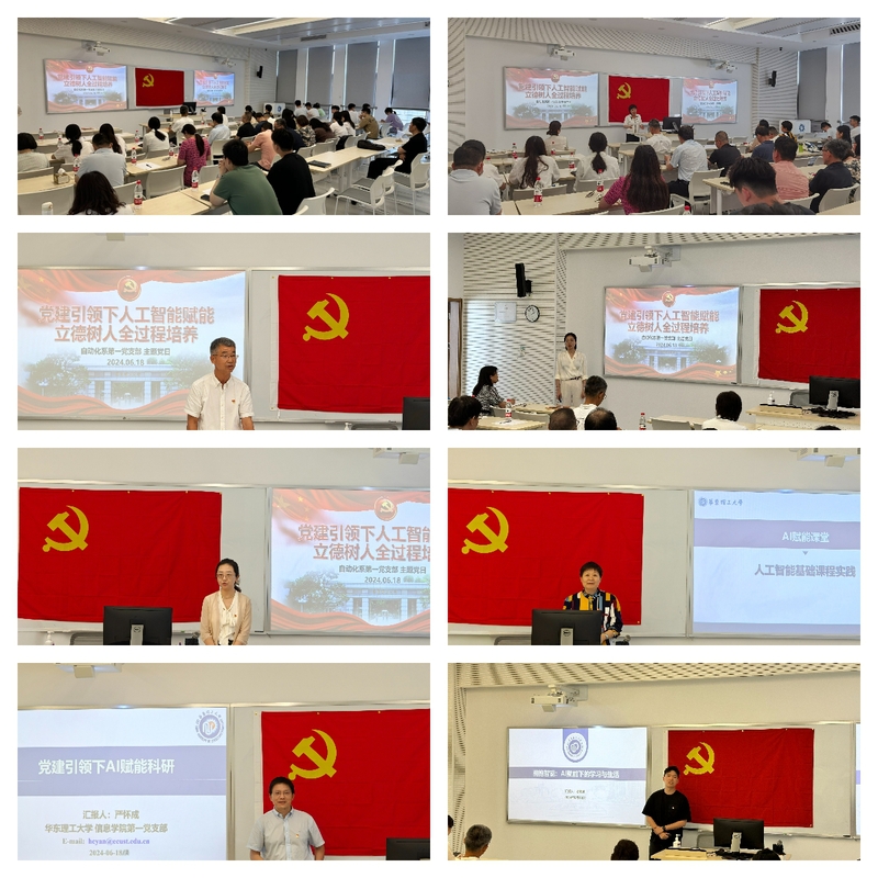 习近平总书记在全国高校思想政治工作会议上指出要坚持把立德树人作为中心环节。在新思想的引领下,自动化一支部以“党建+”为引领,探索构建人工智能赋能的“多平台双师”高质量全链条育人新范式。6月18日下午,av在线 自动化第一党支部携手自动化研究生第一党支部在实验19楼A303开展“党建引领下人工智能赋能立德树人全过程培养” 主题党日观摩活动。王慧锋和来自学校其他院系的党务工作者参加了活动。活动由自动化第一党支部书记杨文主持。