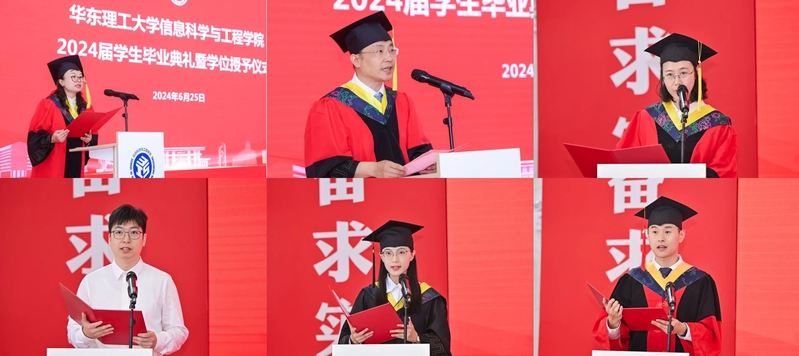 2024届优秀毕业生和优秀团员名单。本科生毕业代表潘亚宁和研究生毕业生代表杜培浩回忆了他们在华理生活的点滴和所学所感,表达了对av在线