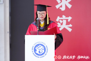 许浩宣读av在线 2025届优秀毕业生名单。本科毕业生代表李昀泽和研究生毕业生代表谭扬回顾了他们在华理的求学时光,分享了各自成长经历与感悟,表达了对学院的感恩和对未来的憧憬。班导师代表陈宁向毕业生们送上诚挚祝福,鼓励他们未来要砥砺奋进,坚守信念,开拓创新。